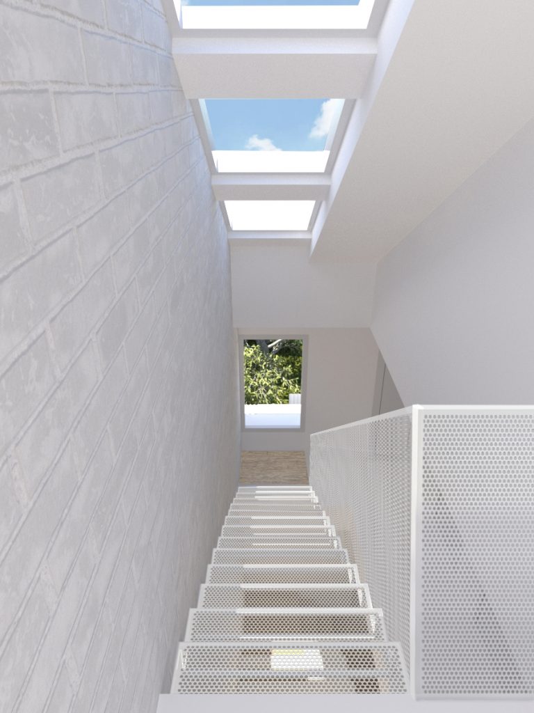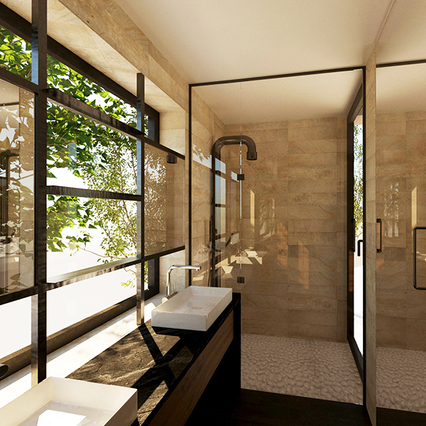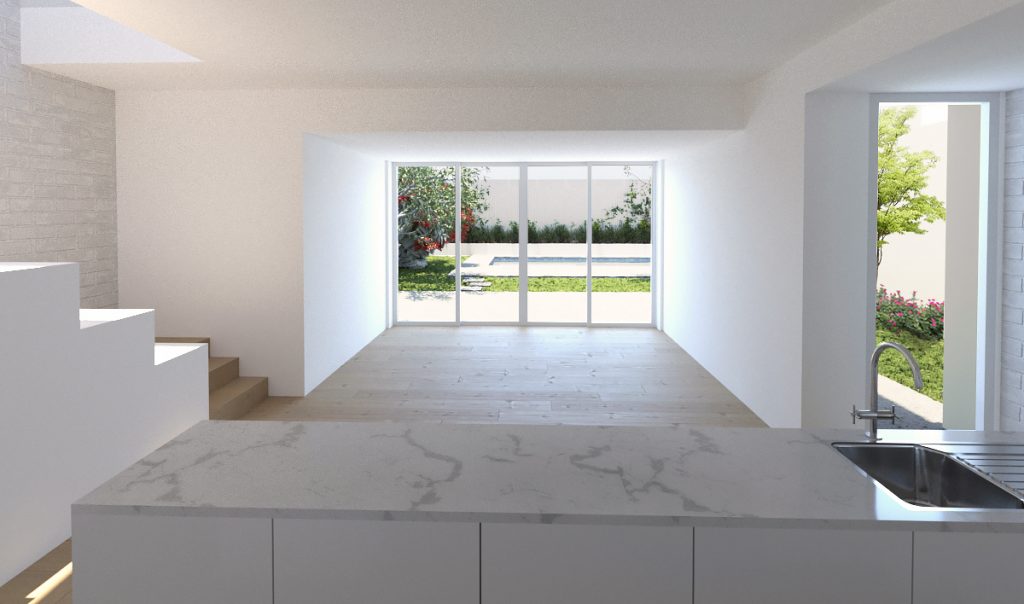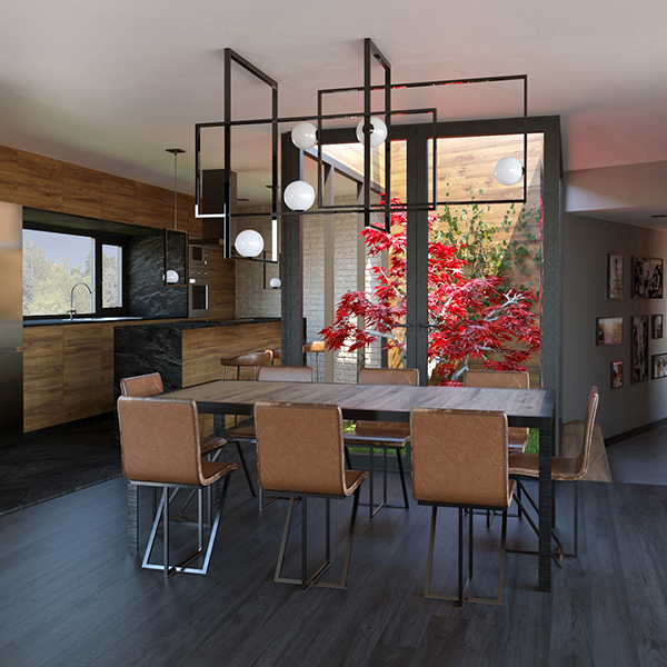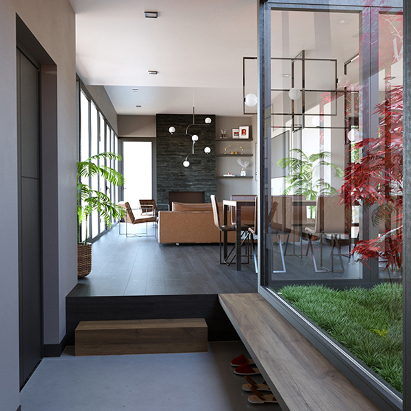 An open, airy space containing the public areas, an interior courtyard that acts as a hinge to the more private area of the home.