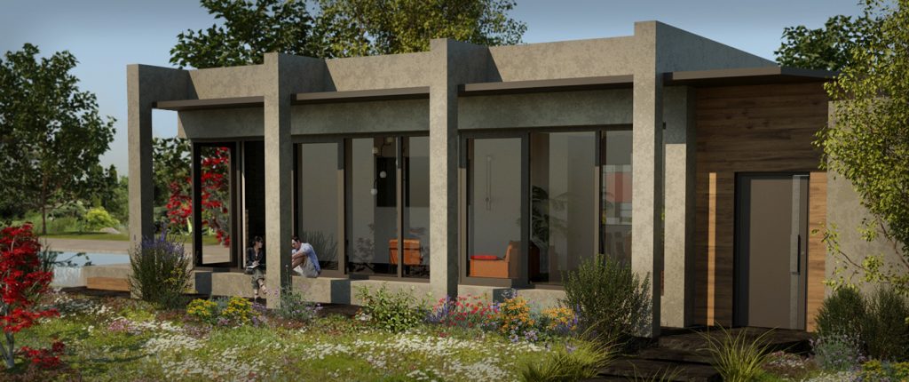 Distribuida en una sola planta, la vivienda se divide en tres volúmenes de jerarquías distintas que se quiebran siguiendo el recorrido del sol.